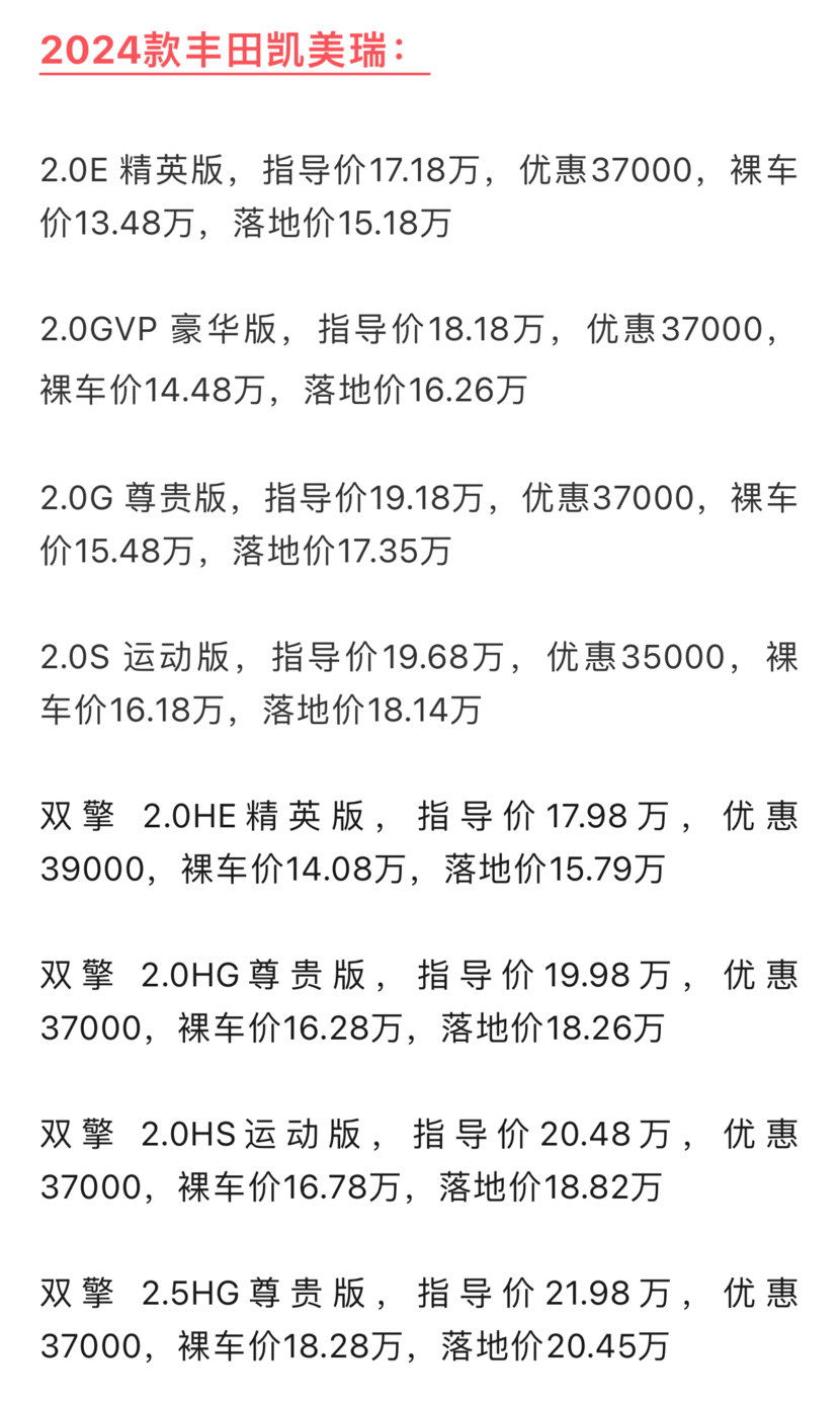 • 凱美瑞十月落地行情
