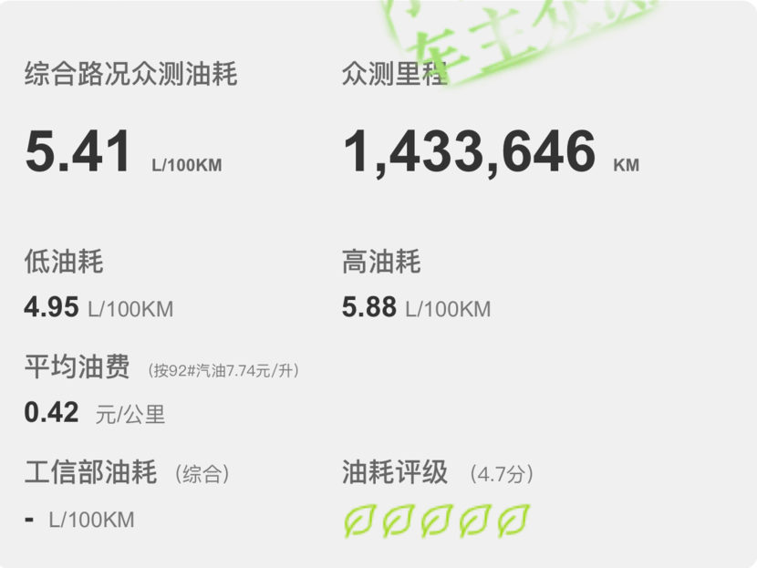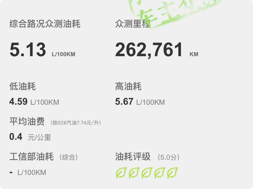 買凱美瑞的朋友可能不在乎動力和配置,但是絕對會在意它的油耗表現(xiàn)?,F(xiàn)在新款凱美瑞最熱銷的是2.0升雙擎動力版本,根據(jù)現(xiàn)有車主超26萬公里的實(shí)測反饋,2.0升雙擎凱美瑞在綜合路況下的實(shí)測百公里油耗為5.13升,按照如今的油價(jià)換算出來,每公里的燃油成本才4毛錢。2.0升燃油版的實(shí)測綜合百公里油耗為7.19升,2.5升雙擎版的實(shí)測綜合百公里油耗為5.41升,不知道這燃油經(jīng)濟(jì)性,有沒有達(dá)到你的心理預(yù)期呢?