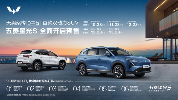 近日,五菱官方透露,旗下新車——五菱星光S將于8月28日上市,新車提供插混(PHEV)車型和純電(EV)車型兩種動力版本,在此之前已經開啟了預售:10.28萬-13.28萬。