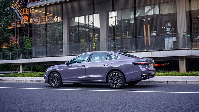 車(chē)身側(cè)面流暢的輪廓與精致的車(chē)窗設(shè)計(jì)相得益彰,彰顯出一種穩(wěn)重而不失運(yùn)動(dòng)感的氣質(zhì)。車(chē)身長(zhǎng)5006寬1850高1489mm,軸距為2871mm。