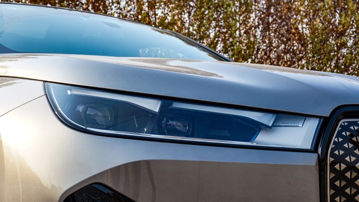 LED極光大燈造型細(xì)長(zhǎng),內(nèi)部?jī)蓚€(gè)主光源組成經(jīng)典的寶馬四眼大燈,這也是目前量產(chǎn)寶馬汽車中最細(xì)長(zhǎng)的車頭大燈。車前蓋只能由特約維修站打開,下面是前驅(qū)動(dòng)單元及熱管理系統(tǒng),車頭唯一能自行打開的只有寶馬標(biāo)下方的風(fēng)擋清洗液加注口。