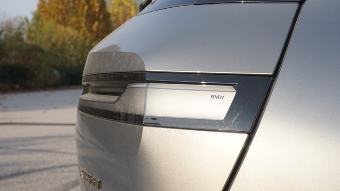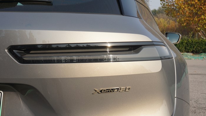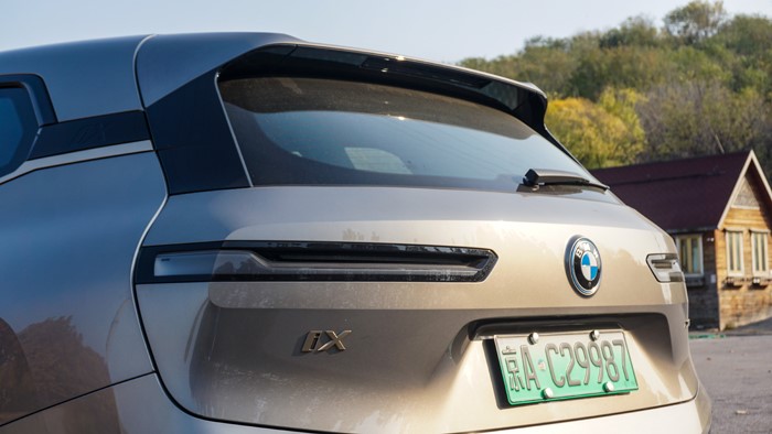 扁平的細(xì)尾燈可以算是iX尾部最個(gè)性的設(shè)計(jì),非常前衛(wèi)。仔細(xì)觀察下,尾燈內(nèi)部這條磨砂質(zhì)感的燈帶其實(shí)是一個(gè)窄窄的“L”型,這也和寶馬家族的其他車型尾燈相呼應(yīng)。