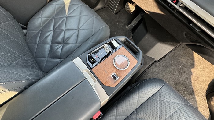 寶馬iX的坐墊很寬大舒適,緊貼車門空間得以最大利用,座椅有著更好的支撐,并配備了通風(fēng)加熱和按摩功能,因此有著舒適的乘坐感受。后排的USB-C接口放在了前排座椅的背面,往下是一個(gè)拓展塢,打開滑蓋后可以安裝諸如小桌板和衣架等配件。