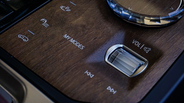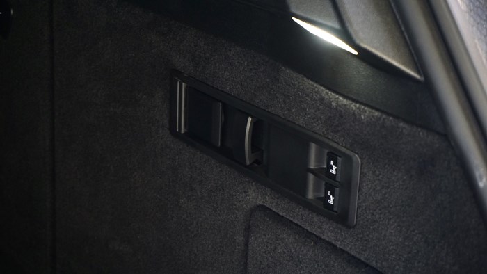 電動(dòng)調(diào)節(jié)座椅的按鍵被移到門板上,使用閃閃發(fā)亮的幾塊水晶。車門的開關(guān)采用按鍵的形式,保持了車廂簡(jiǎn)潔風(fēng)格的一致性。角落里安置了機(jī)械式拉手,避免車輛斷電或者故障時(shí)遇到無(wú)法開門的尷尬。本車選裝了價(jià)值4.35萬(wàn)元的寶華韋健沉浸式4D專業(yè)音響,功率達(dá)1615W,擁有30個(gè)揚(yáng)聲器,聽起來(lái)的感受相當(dāng)不錯(cuò),座椅內(nèi)部還會(huì)加入了共振器,音樂的低音鼓點(diǎn)會(huì)通過(guò)椅背傳遞。