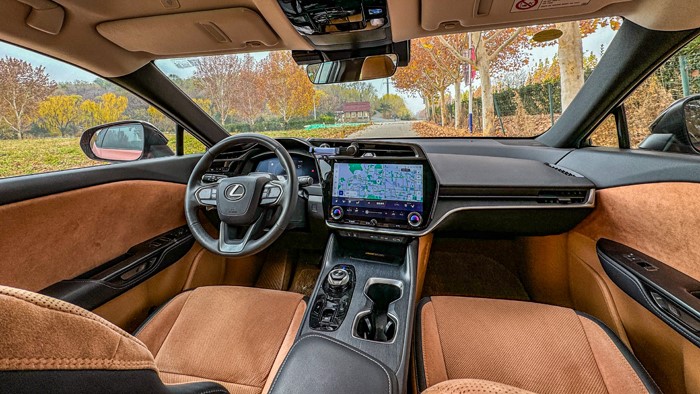 RZ450e的內(nèi)飾采用高品質(zhì)的材質(zhì),如皮革、木紋裝飾、金屬飾條等,營(yíng)造出豪華感。工藝精細(xì),細(xì)節(jié)處理考究,體現(xiàn)出雷克薩斯對(duì)品質(zhì)的追求。