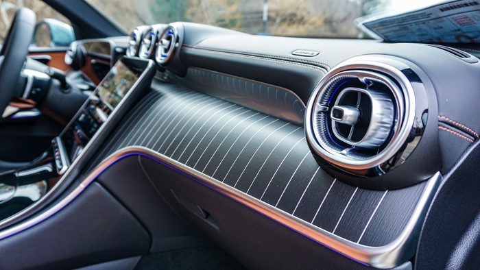 進(jìn)入車(chē)內(nèi),奔馳S級(jí)上的中控臺(tái)設(shè)計(jì)風(fēng)格得以下放,令GLC 300L的內(nèi)飾精致且豪華感十足。細(xì)節(jié)方面的處理也顯示出大廠的功底。