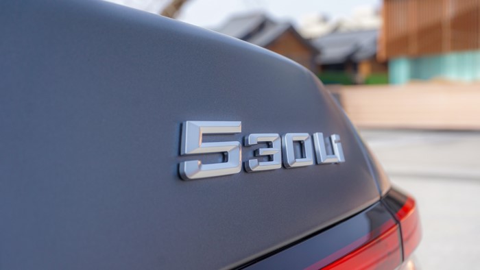 C柱霍夫邁斯特拐角采用全新切削式設(shè)計(jì),鑲嵌了數(shù)字5的徽章,辨識(shí)度非常高,并且這個(gè)數(shù)字在夜晚是可以點(diǎn)亮的。翼子板處還鑲嵌了經(jīng)典的M運(yùn)動(dòng)徽章。