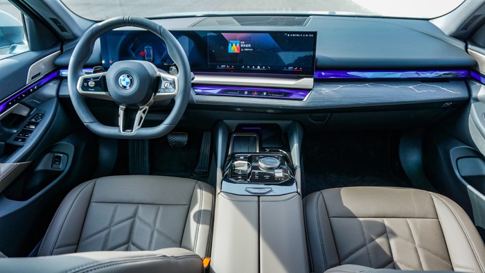 拉開車門走進(jìn)內(nèi)飾,寶馬5系的內(nèi)飾設(shè)計(jì)充滿了現(xiàn)代感和科技感,融合了豪華材質(zhì)、精致工藝和高科技配置。棕色真皮與黑色鋼琴漆、啞光銀色裝飾板相結(jié)合,很顯檔次。