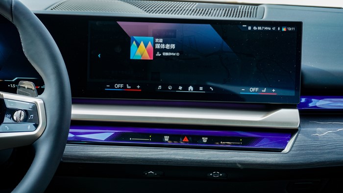 座艙革新:12.3英寸液晶儀表與14.9英寸中控屏組成的一體式懸浮曲面屏(分辨率達(dá)2000×1200),配合iDrive 9系統(tǒng)與高通驍龍8155P芯片,實(shí)現(xiàn)0.3秒級(jí)語音響應(yīng)速度。駕駛者可以通過觸控屏幕或語音控制系統(tǒng)輕松操作車輛的各項(xiàng)功能,實(shí)現(xiàn)智能化駕駛體驗(yàn)。