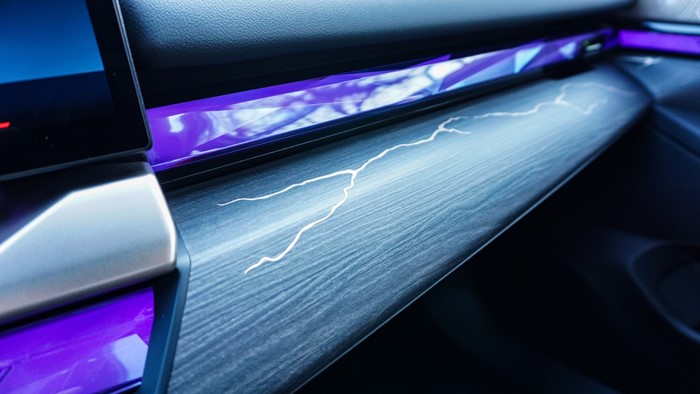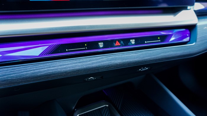 環(huán)抱式交互光帶集成觸控、光效、溫控三重功能,夜間動(dòng)態(tài)光影模式下可投射出7種主題場(chǎng)景。