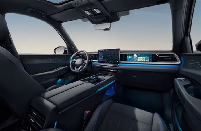 內(nèi)飾方面,新車(chē)內(nèi)飾采用大面積的翻毛皮材質(zhì),藍(lán)色的縫線(xiàn)裝飾,中控臺(tái)銀色裝飾修邊,營(yíng)造精致豪華氛圍??萍寂c舒適配置方面,車(chē)輛采用三屏設(shè)計(jì),儀表盤(pán)引入AR實(shí)景導(dǎo)航,懸浮式中控屏有著豐富的第三方應(yīng)用,語(yǔ)音控制一次可完成多個(gè)指令,手機(jī)互聯(lián)支持CarPlay、CarLife、HiCar。副駕屏有影音娛樂(lè)功能。