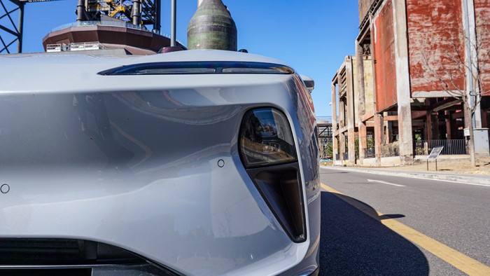 蔚來全封閉式車頭線條相當(dāng)犀利干練,車頭與銳利的分體式LED大燈相得益彰,給人一種蓄勢待發(fā)的感覺。