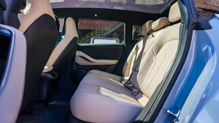 展開尾門,門框上還有BLUE SKY COMING的設(shè)計(jì)彩蛋。后備箱的內(nèi)部非常平整,后座可424分別放倒,提升裝載能力。整體而言,ET5T的外觀不僅展現(xiàn)了蔚來對細(xì)節(jié)的極致追求,更傳達(dá)出一種未來出行的美好愿景,設(shè)計(jì)上很容易讓人接受,沒有短板。