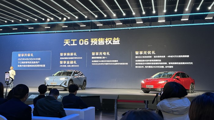 4月23日24點(diǎn)前下訂天工06高階智駕優(yōu)選版用戶免費(fèi)升級(jí)包含前排座椅加熱、通風(fēng)、主駕座椅按摩、后座加熱、麂皮云頂內(nèi)飾、一鍵舒躺尊享副駕等尊享配置。還為預(yù)訂用戶準(zhǔn)備了5000元置換補(bǔ)貼、2年0息以及整車及三電終身質(zhì)保等權(quán)益。