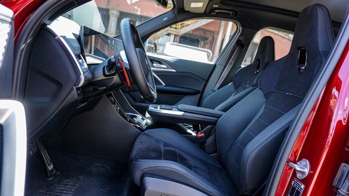 奔馳AMG GLB 35的座椅采用紅黑雙拼配色,但樣式相比寶馬來說略顯保守了些。