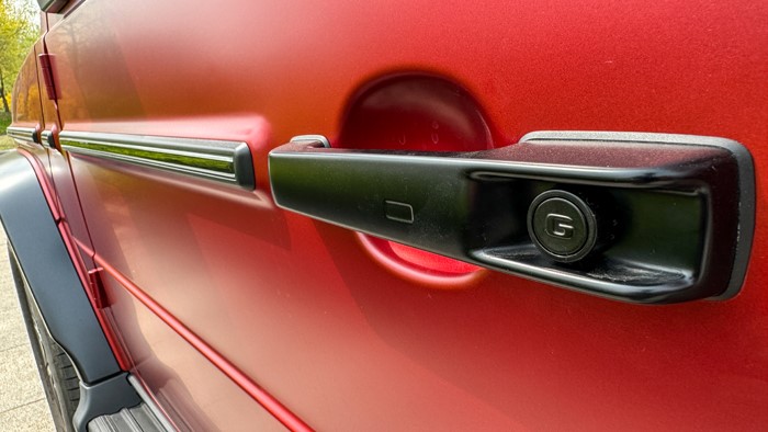 為保持經(jīng)典的造型奔馳G的設(shè)計師保留了一切經(jīng)典元素。舉個例子來說,車輛位于翼子板上的轉(zhuǎn)向燈是一直以來奔馳G所堅持的設(shè)計。車輛標(biāo)志性的機(jī)械把手、裸露在外的門鉸鏈等經(jīng)典設(shè)計,都在全新奔馳G上得以保留,就連門拉手的按鈕上都被設(shè)計了G字元素。