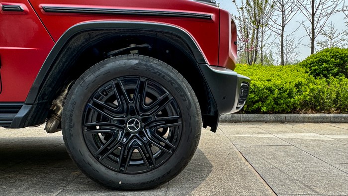 這臺奔馳G500采用275/55 R19輪胎是非常明智的選擇。畢竟G500不像G63那樣,可以為了追求更加極致的公路表現(xiàn)而犧牲車輛的越野能力。額外增加的車身尺寸并沒有給車身設(shè)計上造成什么困擾。盡管相比于老款車型來說全新奔馳G看起來更高了,但是實際上車輛的重心比老款車型明顯降低了。