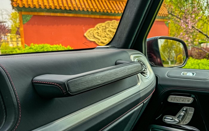奔馳G500在車輛的主駕駛B柱底部還隱藏了schckl Proved徽章。這枚徽章代表著奔馳G通過了奔馳G系列一直以來專屬的測試場地:奧地利schckl山峰的測試。