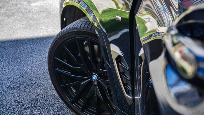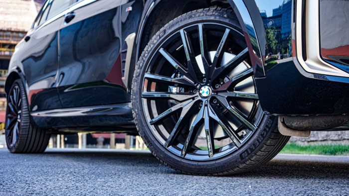 黑焰限量版xDrive 40Li車型標(biāo)配22英寸輪轂,配合前275/35 R22,后315/30 R22的規(guī)格,不僅視覺效果更加大氣,操控性也進(jìn)一步提升。