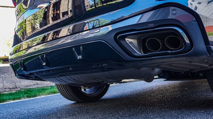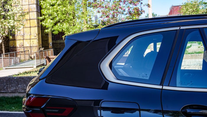 如果你不仔細(xì)觀察后門,還真是不好分辨這是臺(tái)國產(chǎn)寶馬X5,但只要你留意一下后門的長(zhǎng)度,確實(shí)是很寬大。全面黑化的尾部配合四出排氣實(shí)在是帥氣十足。