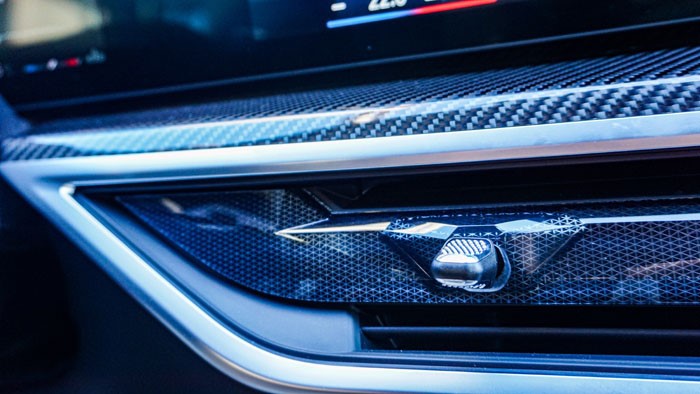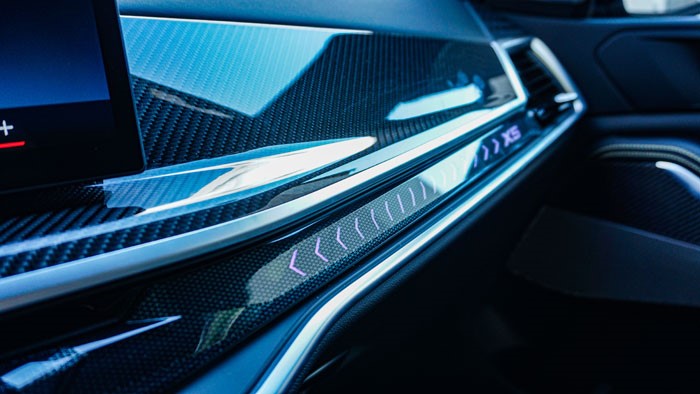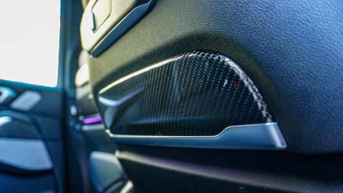 碳纖維內(nèi)飾面板與啞光色鋁條營造出充滿運(yùn)動(dòng)感的控制區(qū),黑焰限量的徽章也是獨(dú)有的。從實(shí)際駕乘感受上看,全車隔音配合16喇叭的哈曼卡頓音響的效果是非常值得肯定的。