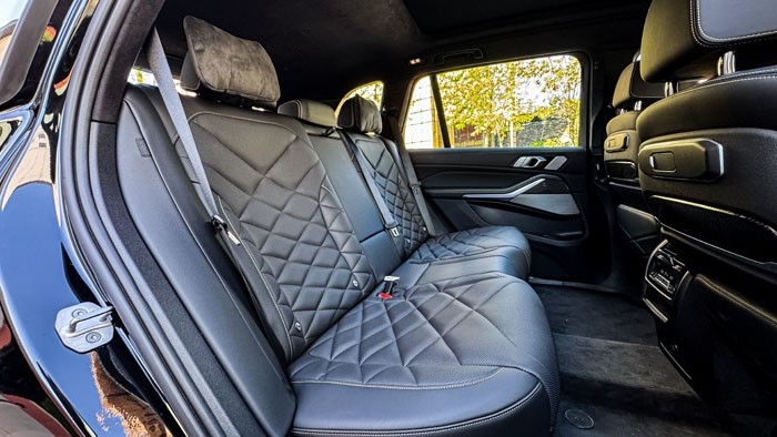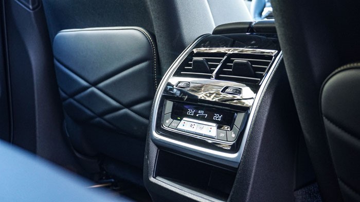 這臺(tái)黑焰限量版寶馬X5的后排空間非常寬敞。得益與國產(chǎn)軸距加長(zhǎng)了130mm,后排縱向空間增加了130mm。后排座椅坐墊也進(jìn)行了加厚,并略微調(diào)大了后排座椅靠背的角度。這臺(tái)頂配尊享版后排座椅還帶有電加熱功能。