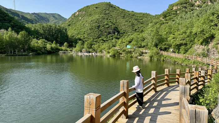 翻過小山,沿著木棧道走,就看到了小水庫,又是一片不一樣的風(fēng)景。