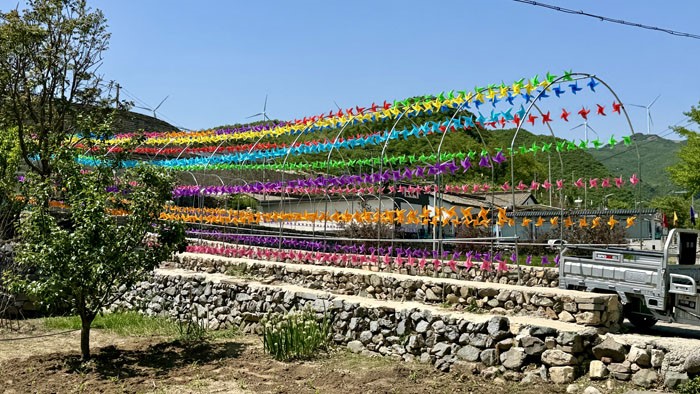 有些風(fēng)景是城市里看不到的,就像村民家的小菜園、綠油油的大蔥和果樹,隨風(fēng)轉(zhuǎn)動(dòng)的風(fēng)車讓人身心放松。