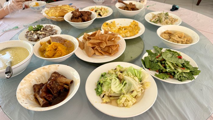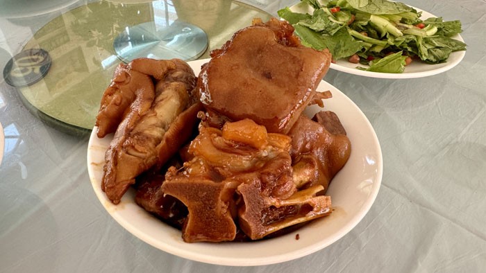 這里是吃豬蹄宴為特色的農(nóng)家飯,所以我們也入鄉(xiāng)隨俗,點(diǎn)了套餐,每個(gè)人70元,豬蹄不限量。聽老板說如果一桌里人多的話還會(huì)有燉魚和豬肘子。實(shí)際體驗(yàn):飯菜口味適中,大人老人孩子都覺得不錯(cuò)。