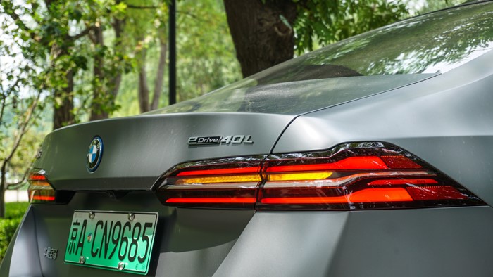 寶馬i5擁有獨(dú)特的尾部設(shè)計(jì):尾燈組采用了狹長(zhǎng)的紅白雙色LED光帶設(shè)計(jì),與車身線條相呼應(yīng),尾部與車頭相比較為短小,有些溜背的感覺,增加了一些運(yùn)動(dòng)感。