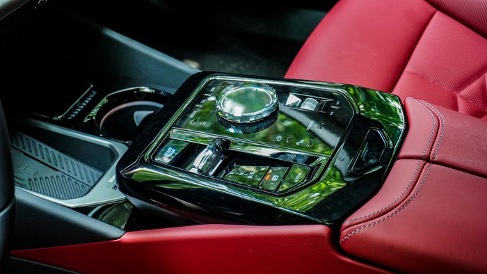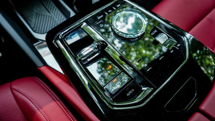 這臺(tái)寶馬i5 40L采用了紅黑為主色的內(nèi)飾,但這個(gè)“勃艮第紅”是低飽和度的紅,所以在夏天看上去也不會(huì)給人燥熱的感覺。寬大的座椅不論胖瘦都可以找到適合自己的駕駛姿勢(shì)。前排座椅三檔位加熱及通風(fēng)、方向盤加熱功能非常實(shí)用。