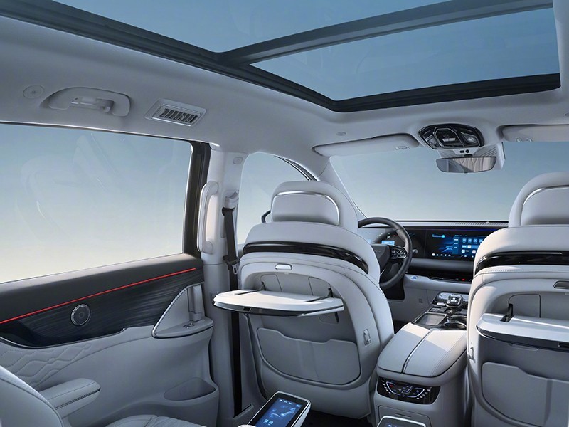 內(nèi)飾方面,現(xiàn)款采用12.3英寸液晶儀表、16.2英寸中控屏及12.3副駕娛樂屏組成的三聯(lián)屏設(shè)計,搭配游艇同款方向盤,內(nèi)置高通驍龍8155芯片。車內(nèi)采用2 2 3的布局,二排配航空座椅,還提供腿托等功能。現(xiàn)款還搭載騰訊TAI 4.0智能車機(jī),提供高速NOA功能。
