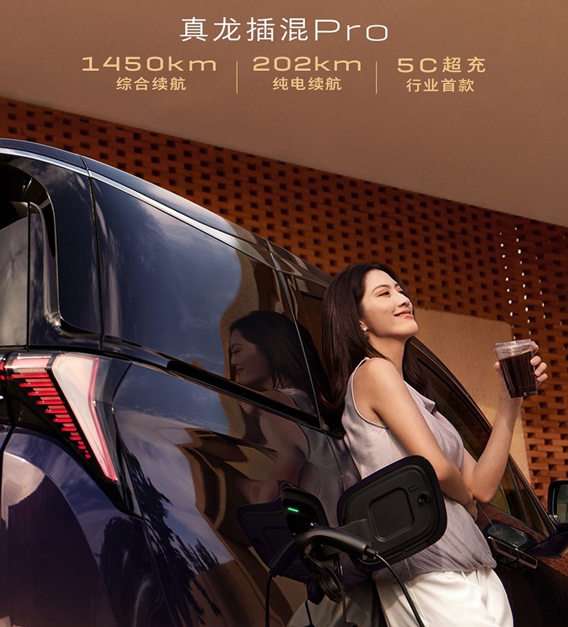動力方面,新車搭載1.5T插混,綜合功率292kW,綜合扭矩580N·m,并提供三元鋰電池。新車支持5C超充,CLTC純電續(xù)航202km,綜合續(xù)航1450km。
