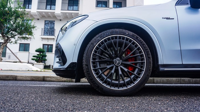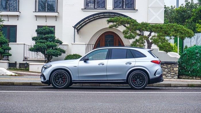 AMG GLC 43的車身線條很流暢,側(cè)面的腰線勾勒出動感的輪廓,同時突顯出車身的穩(wěn)定感。車身的長寬高為:4749*1938*1640mm,軸距2888mm。輪胎規(guī)格為米其林:前265/45 R20、后295/40 R20,不過本車選裝了21寸的輪轂。