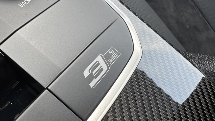 懸浮式液晶屏配合全新造型的電子擋桿以及平底式式麂皮M運動多功能方向盤,讓新車看上去十分年輕、運動,換擋桿區(qū)域的裝飾面板采用碳纖維面板,并設(shè)計有50周年限量版徽章,視覺和觸感上質(zhì)感一流。