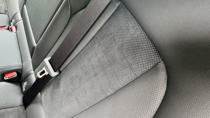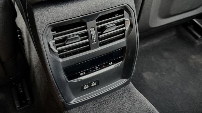 當坐上3系的后排那一刻,最大的感受是出奇的舒服,座椅很柔軟,后排座椅坐姿幾乎可做到“半躺”,靠背中央處有暗暗的藍色花紋很有質(zhì)感。后排空調(diào)出風口處配置了兩個C口充電口,中央扶手處有2個水杯架。