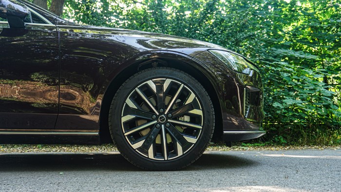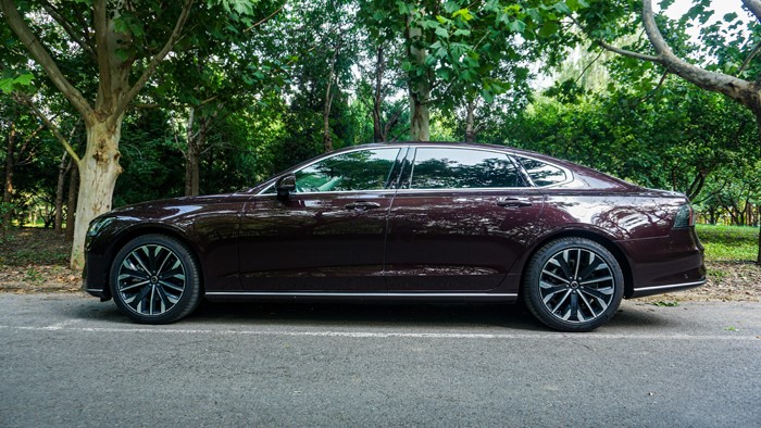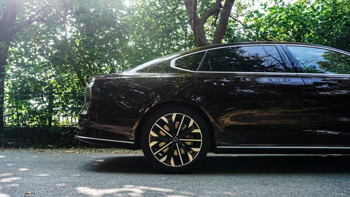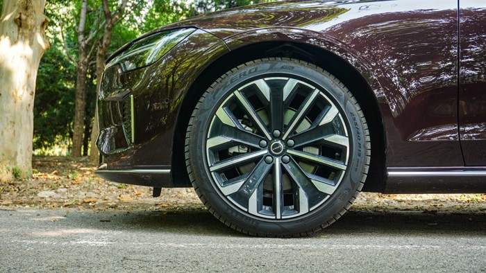 所以,從實(shí)際乘坐感上來說,S90是非常優(yōu)秀的。偌大的一個車,坐進(jìn)去后,身高180厘米以下的人,感覺都是游刃有余。車輛使用雙色動感造型的輪轂,讓車運(yùn)動感十足,輪胎使用了255/40 R19的規(guī)格。