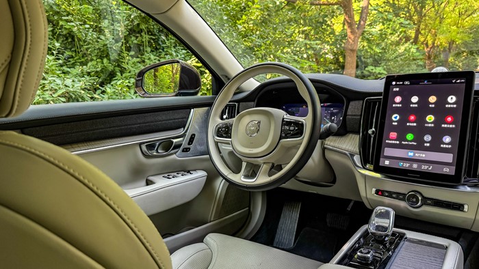新款S90內(nèi)飾升級也是可圈可點(diǎn)的,特別是11.2英寸中央觸摸顯示屏,采用LCD(液晶顯示技術(shù)) LCF(光線控制膜防反射涂層),可提供超清畫質(zhì) 防止光線反射和炫光 紅外線觸控技術(shù)。支持點(diǎn)擊、劃動、拖動、手寫、放大/縮小,(多點(diǎn)觸控) 集合了駕駛、安全、娛樂的全部功能按鍵,同時包含空調(diào)與座椅控制,非常方便。 支持個性化定制界面,整合蘋果Carplay擴(kuò)展 ,能將蘋果設(shè)備的顯示界面同步投射至中央顯示屏 。