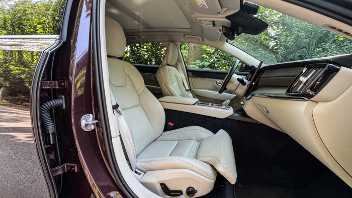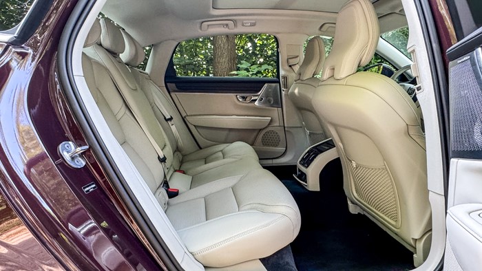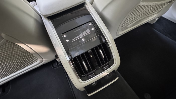 寬大舒適的后排座椅,軟硬度適中,不是坐上去塌陷的那種感覺,沃爾沃官方稱這樣的設(shè)計更適合長途駕駛,避免腰部過早疲勞。后排的腿部空間可以用奢侈來形容,一點(diǎn)也不為過。當(dāng)然后排座椅也是帶有加熱和通風(fēng)功能的。