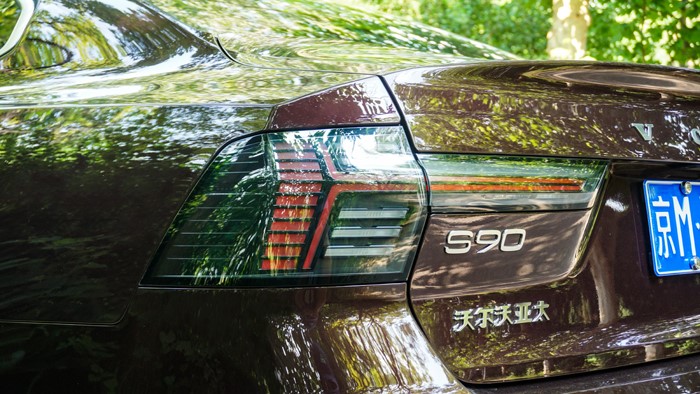 新款的尾燈造型是具有極高辨識度,采用熏黑式處理,“維京之斧”尾燈很難在街上“撞衫”所以在夜晚很容易認(rèn)出這是一臺沃爾沃S90。