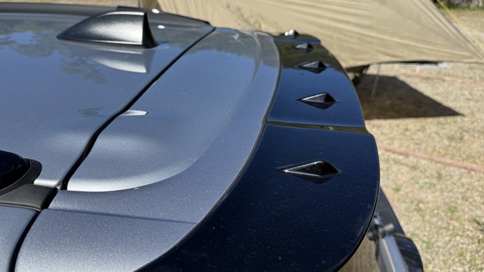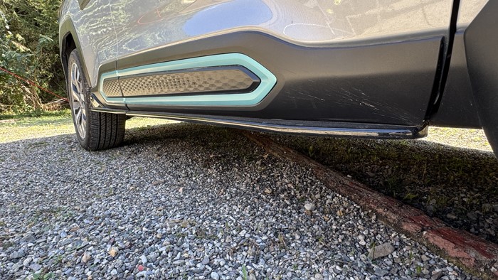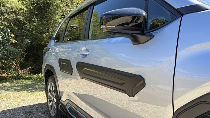 在保留黑色的車頂行李架、黑色的外后視鏡 、黑色的越野包圍套件、黑色的玻璃邊框以外。這款改裝版車型最大變化就是車門上的大塊防擦條,猶如貝殼般貼合車身。