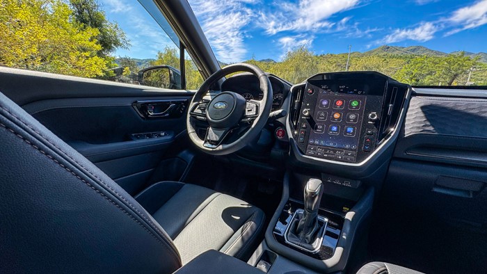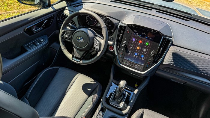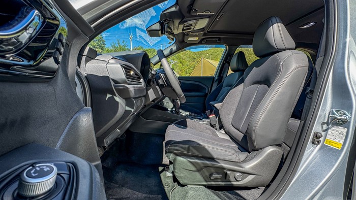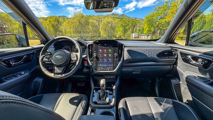 座椅材質樣式均與普通版森林人相同,采用黑色真皮搭配奧司維®Ultrasuede®面料,座椅支撐結構也進行全面升級,骶骨支撐更貼合,長途駕駛不易疲勞,顛簸路面也能保持舒適坐姿。