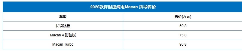 2026款保時(shí)捷純電Macan上市 售價(jià)59.8-96.8萬