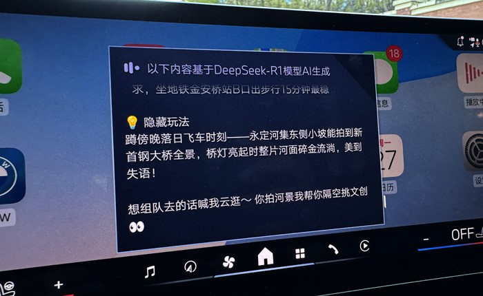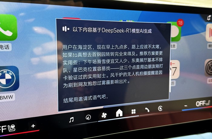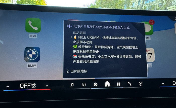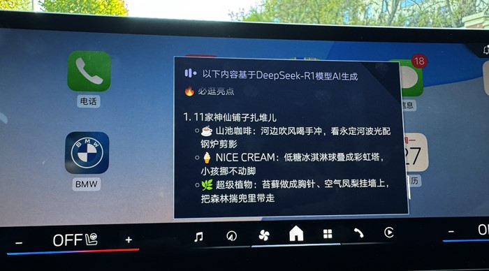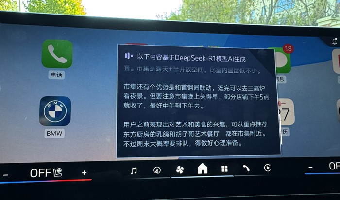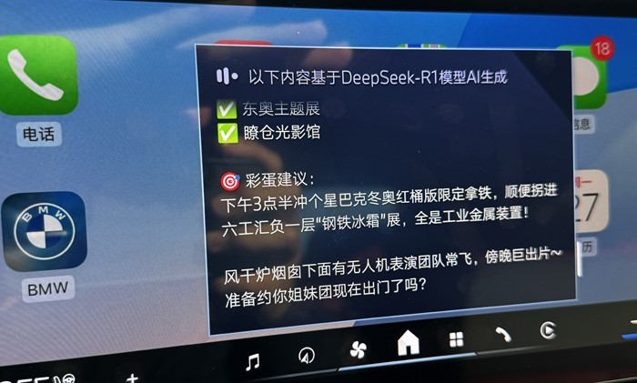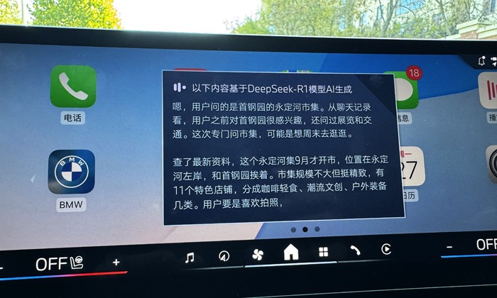 用語(yǔ)音喚醒寶馬車(chē)機(jī),開(kāi)啟DeepSeek:你可以直接問(wèn)關(guān)于首鋼園永定河市集的信息。