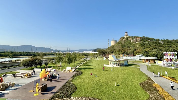 我導(dǎo)航的是首鋼香格里拉酒店停車(chē)場(chǎng),這里距離永定河大集非常近。停好車(chē),沿著路標(biāo)一直向河邊步行,曬著溫暖的陽(yáng)光,沿路風(fēng)景讓人心情很放松。