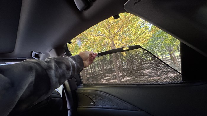 另外,后車窗的手動(dòng)遮陽簾面積非常大。