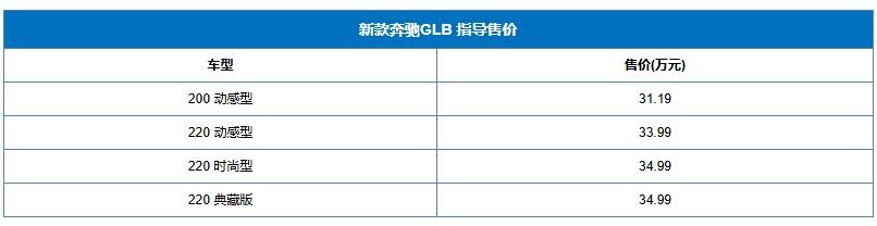 近日,新款奔馳GLB上市,共推出4款車型,售價區(qū)間為31.19-34.99萬。
