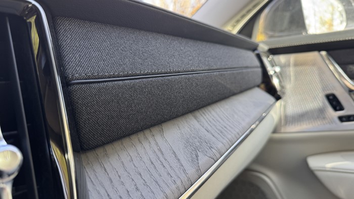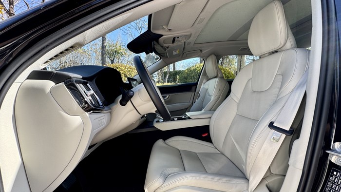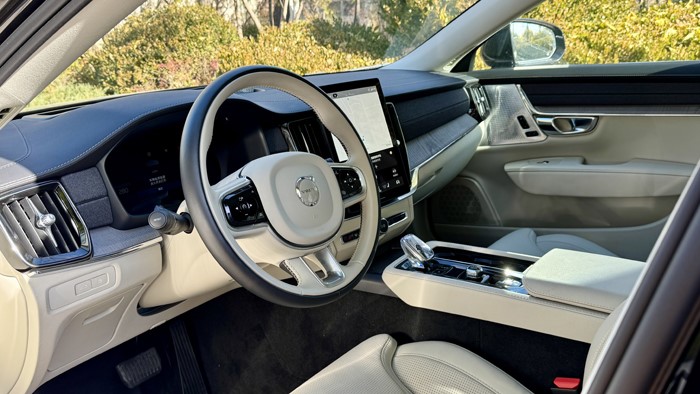 這臺沃爾沃S90插電式混動使用了大量的金屬裝飾面板配合淺白色內(nèi)飾,顯得簡約且豪華。12.3英寸全液晶儀表盤閱讀起來十分清晰。