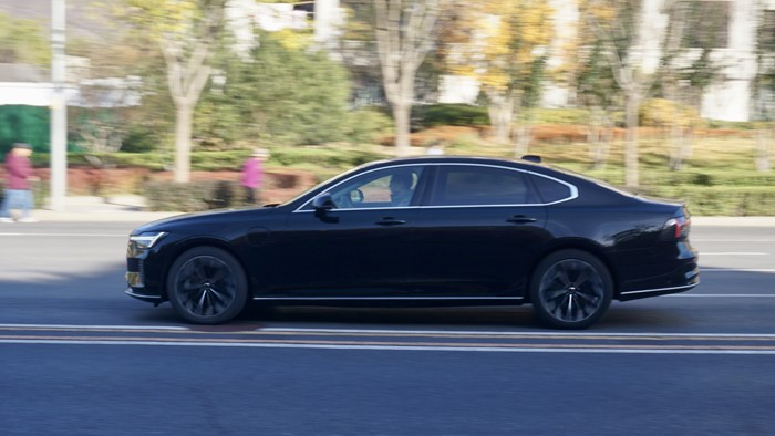 S90屬于中大型轎車配合瑪瑙黑的油漆格外莊重,車身尺寸長寬高分別為5090×1879×1453毫米,軸距3061毫米。這個尺寸相對BBA競爭車型來說,有較大的優(yōu)勢。舒展的車身側(cè)身,讓人能感受到氣場與優(yōu)雅。