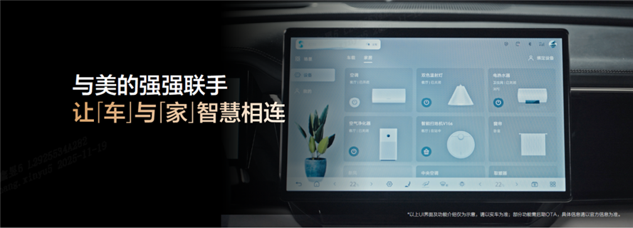 比亞迪更與眾多合作伙伴聯(lián)手,帶來了唐L生態(tài)大禮包,構(gòu)建起完整的“人x車x家”生態(tài)。最為重磅的是,比亞迪與美的強(qiáng)強(qiáng)聯(lián)手,讓“車”與“家”智慧相連。用戶在家中即可通過智慧屏了解車輛狀態(tài),遠(yuǎn)程開啟空調(diào)和座椅加熱;在車上通過語音控制家中電器;當(dāng)車輛接近家時(shí),“回家模式”自動(dòng)啟動(dòng),提前打開家中燈光、暖氣等設(shè)備,實(shí)現(xiàn)無縫互聯(lián)體驗(yàn)。